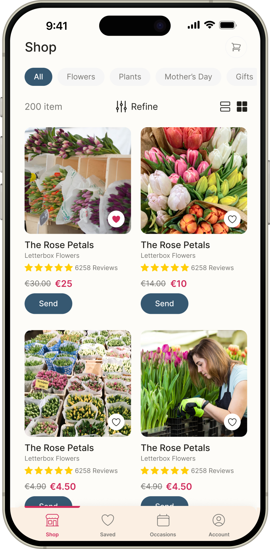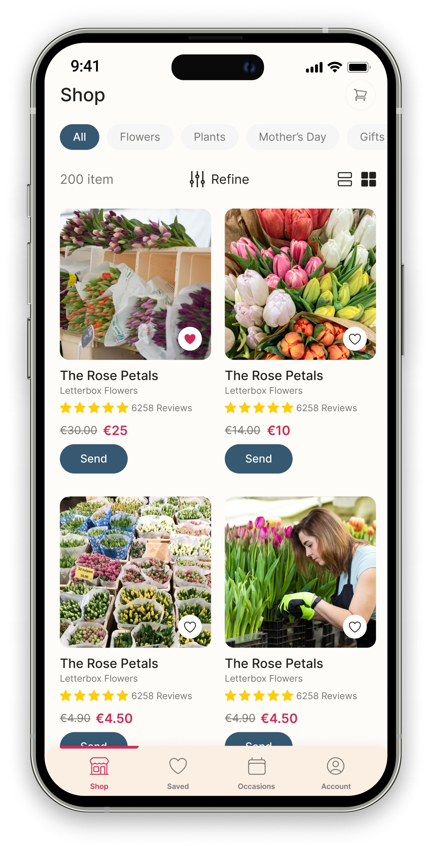 Whether you're browsing seasonal blooms or scheduling a surprise delivery, our app makes it effortlessly elegant.